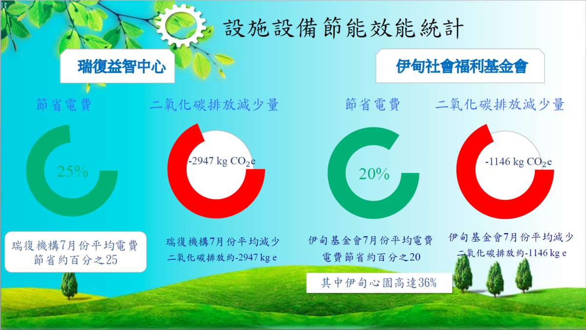 在教育方面針對先鋒隊員及伊甸社會福利基金會、瑞復益智中心的教職員與院生分別辦理課程,一方面教導院童對節能減碳有較為完整的認識;另一方面,協助院生們的增加實作經驗,並培養教職員成為該中心技術的應用者及管理者,本次共計完成培訓先鋒隊員20人,協助改善的伊甸社會福利基金會、瑞復益智中心的參與人員包含工作人員共290位,伊甸社會福利基金會參與人員包含工作人員共112位,合計425位。計畫完成後,瑞復益智中心8月份之日均用電比去年同期節省13.6%,顯示本計畫之節能成效卓著,為能將本計畫成果展現,並將節能概念推廣至一般民眾,本校先鋒隊員配合「2018瑞復傳愛 漁您同行-愛心園遊會」活動中辦理成果發表會,會中除了呈現本次計畫成果外,並將學生自行開發之教材及教案,配合遊戲之設計讓民眾參與,藉由遊戲過程了解節能標章、回收分類及節能相關常識,達到寓教於樂的效果。